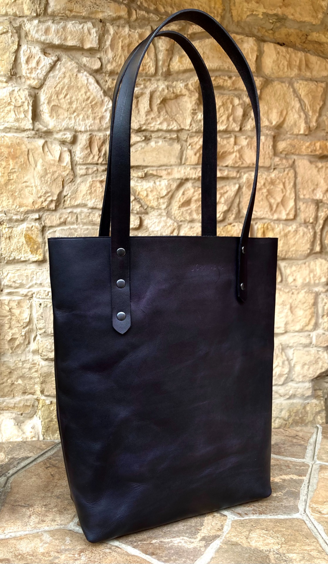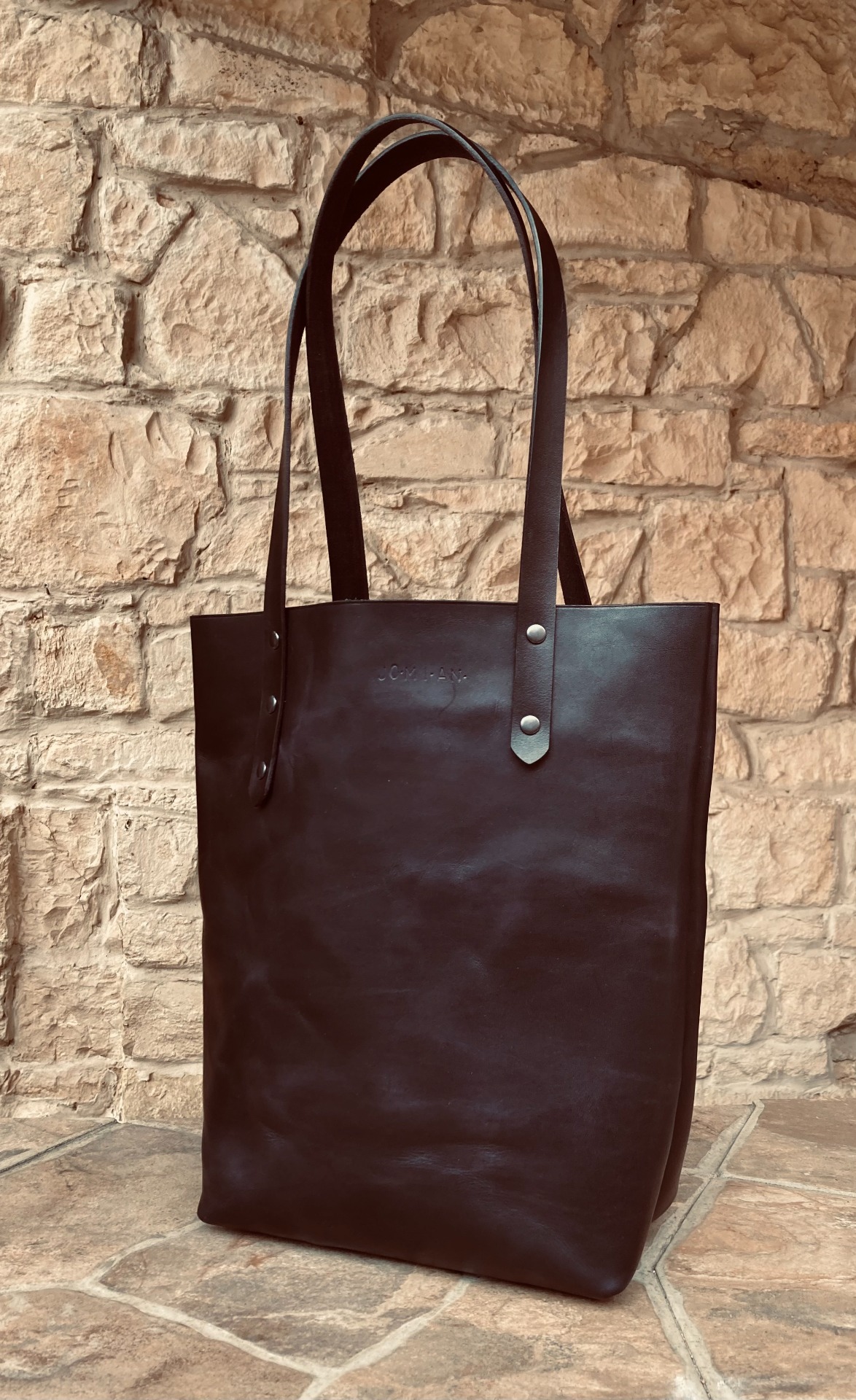 Kožený tote bag, lehký, praktický s jemným detailem. Vhodný pro každý den, kdy chcete vyniknout nenápadně. Spojuje funkčnost s luxusem v podobě použité třísločiněné hovězí usně spojené s poctivou ruční výrobou. Jako každý produkt v mé dílně, platí i pro tote bag, že Vám jej připravím na zakázku v různých barevných kombinacích.